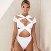 European and American Summer Hot Girl Sexy Cross Folding Solid Color Crop Top Jumpsuit