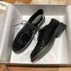 Women's 2024 Autumn British Style Black Leather Lace-Up Flat Loafers with Soft Soles