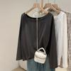 Black Relaxed Angled Shoulder Long-sleeved T-shirt for Women Off-shoulder Early Autumn Lazy Loose Hot Girl Sexy One-shoulder Top
