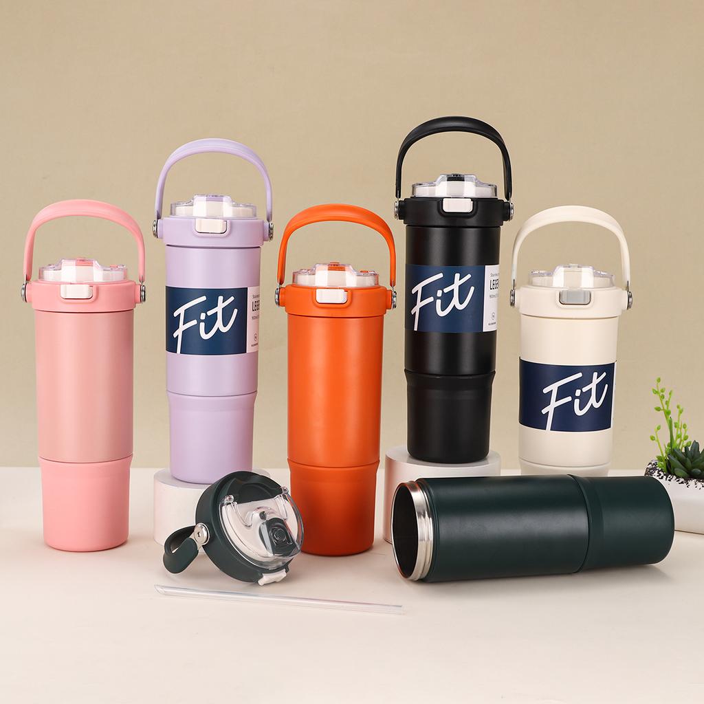 Stainless Steel Handle Car Cup Double Vacuum Spring Cover Thermos Cup Outdoor Fitness Sports Kettle