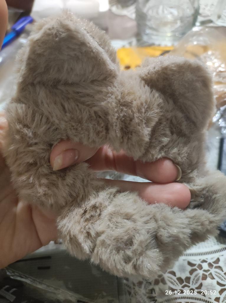 Cute elastic band. The ears are not very noticeable on the ponytail. Made by gluing two pieces of fabric together.