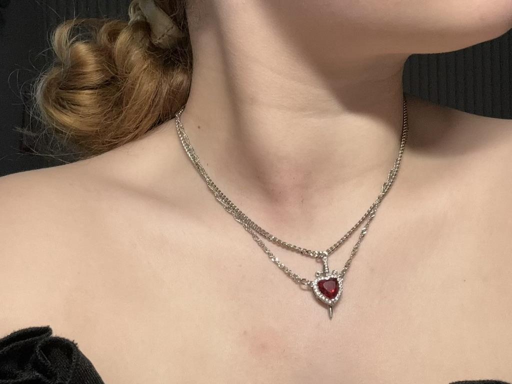 Can Be Assembled Heart and Sword Zircon Pendant Necklace for Women Men Couple Silver Gold Plated Choker Chain Jewelry