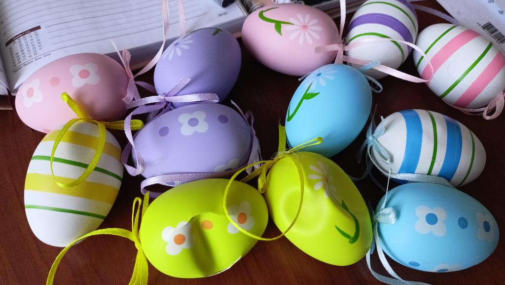 12 Pcs Easter Eggs for Hanging Plastic Colorful Easter Eggs with Silk Ribbon Decorative Easter Eggs