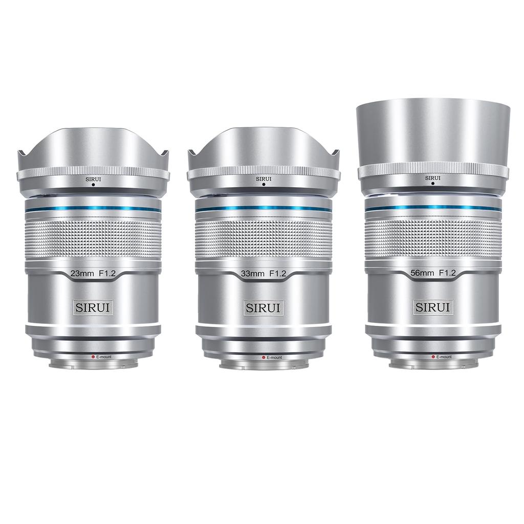 SIRUI Sniper Auto Focus Lens Wide Angle Camera Lens A5 A6 A7 FX A9 Series Set, 23mm, 33mm, 56mm, F1.2 APS-C ZV-E (E Mount, Silver)