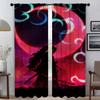 Demon Slayer Elegant Room Curtains for Living Room Halloween Decoration Home Interior Curtains 2 Pieces Tulle for Bedroom Shades