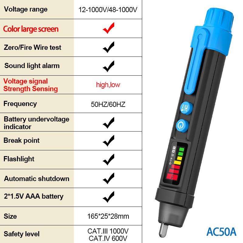 Color Screen Voltage Indicator Electric Voltage Test Pen Non-contact Voltage Detector Voltage Tester Sound Light Alarm