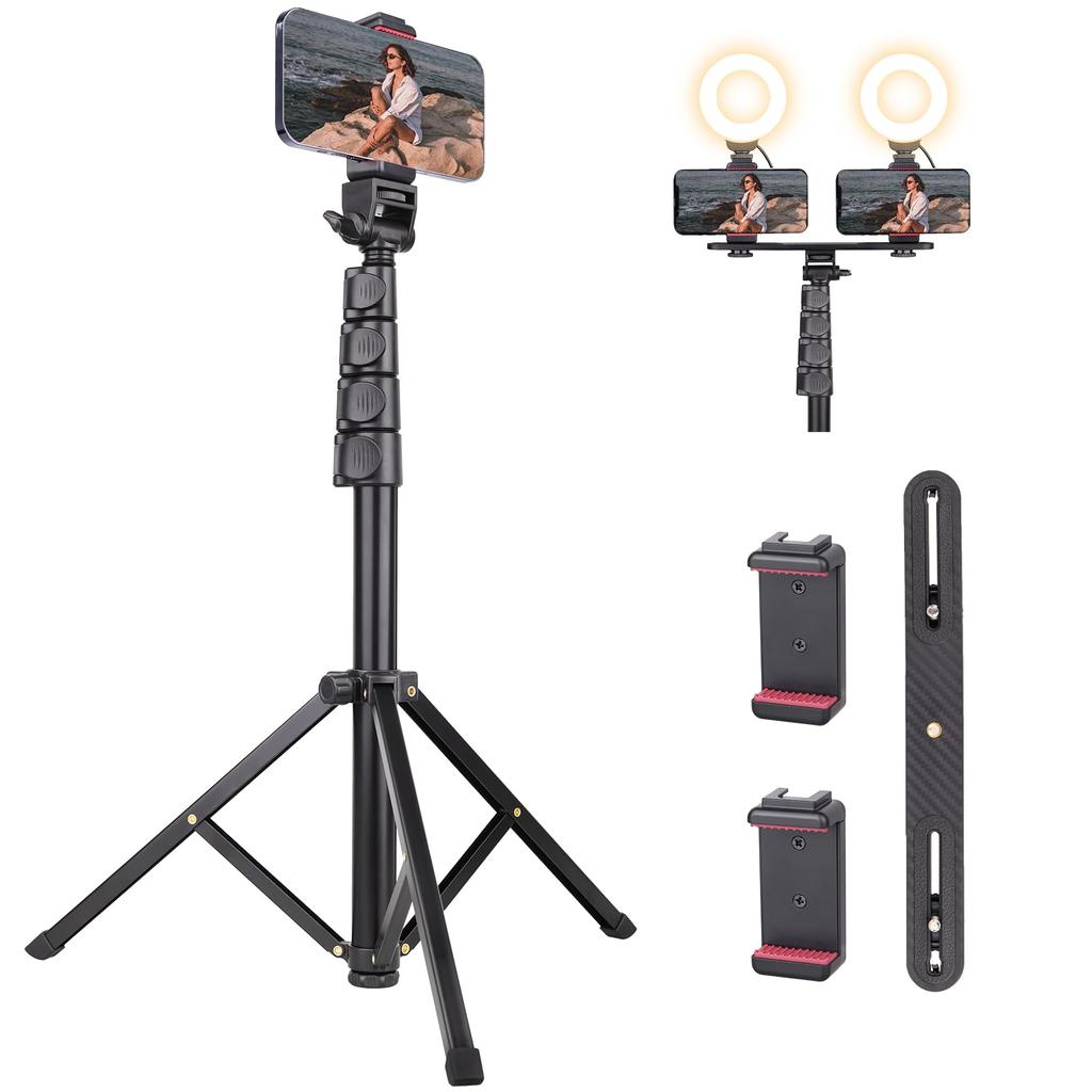 ARTCISE Smartphone Tripod with Straight Bracket and Smartphone 5 Levels of Smartphone Easy To Mini Smartphone Stand Clip, Telescoping, Foldable,
