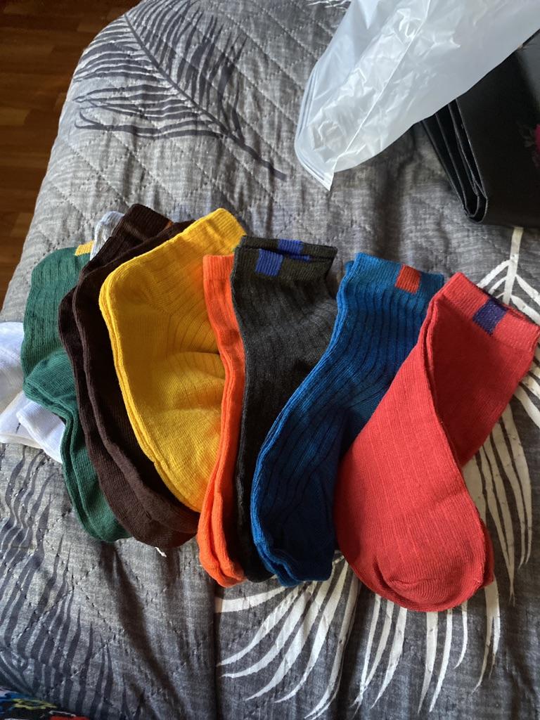 Today I received the package, everything is packed neatly!!! And the socks are just super, the color is beautiful, 10 different colors!!! I am very happy with them!!! THANK YOU EVERYTHING IS EXCELLENT, EVERYTHING FITS!!!