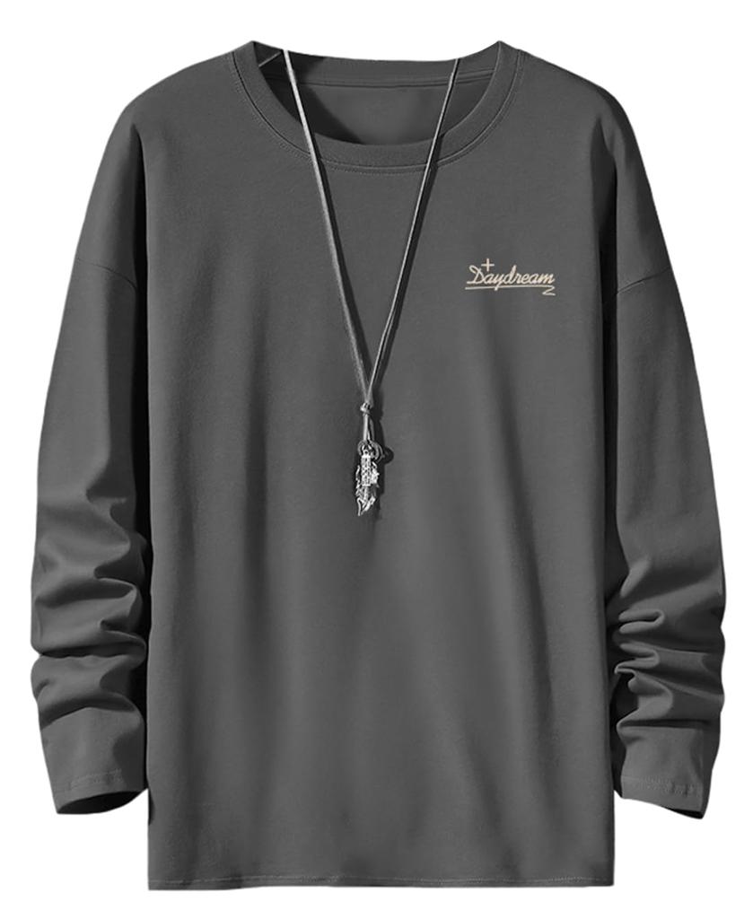 Long Sleeve Large Size [JHIJSC] Men's T-Shirt, Autumn, Plain, Cotton, Stylish, Simple, Casual, (XL, Gray)