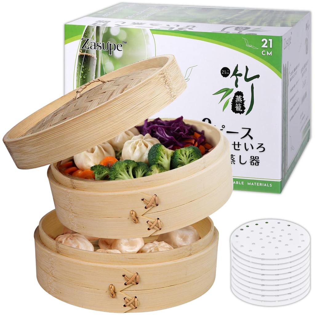 Zasupe 2 Natural 30 Sheets of Bamboo Steamer Japanese Instruction Manual Natural Steamed Vegetables Steamer, 21cm, Tiers, 100% Bamboo, Paper,