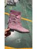 2025 Spring Women's Large Size Mid-Calf Martin Boots with Thick Heels & Straps - Retro Leather Style
