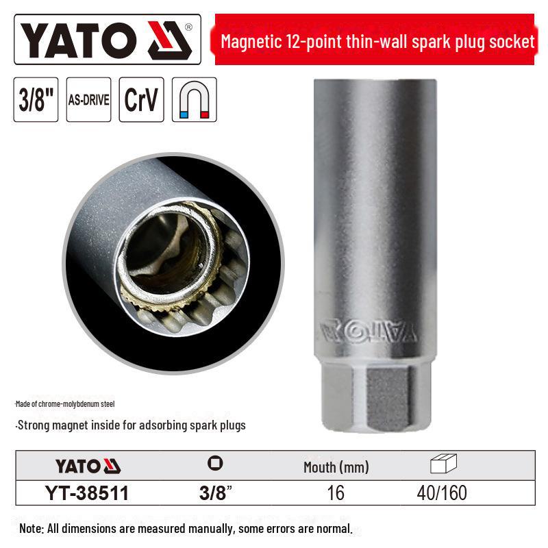 Yiertuo Magnetic 12-Point Thin-Walled Chrome-Molybdenum Steel Spark Plug Socket 3/8" Wrench