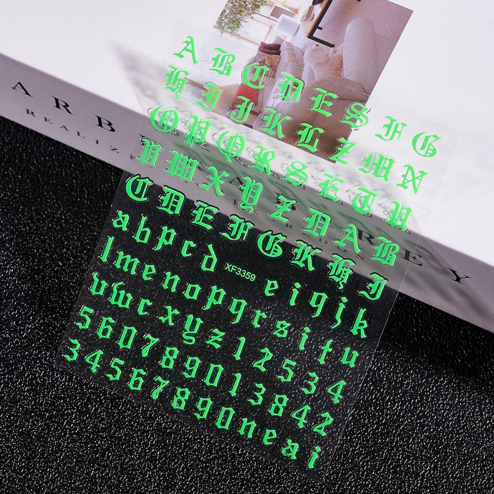 3D Adhesive-Backed Letter Manicure Decorative Sticker Fluorescent Yellow-Green Self-Adhesive Plastic Self-Adhesive Nail Sticker Nude