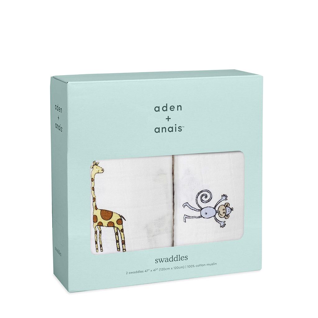 Aden Anais Swaddle Gauze Baby Genuine Product Aden Anais Swaddle Set of 2 Jungle Jam Muslin 120 X 120cm Aiden and Anai Swaddle Baby Newborn 4023 +
