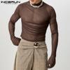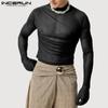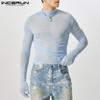 INCERUN Men Long Gloves Sleeve See Through Tops Club Party Mesh Skinny T-Shirts