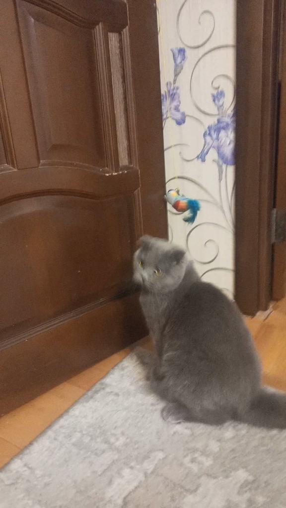 The sound this little bird makes is ominous... The cat got scared, goes around it...