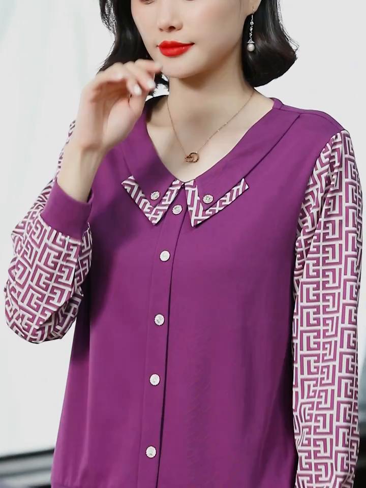 Women's 4XL T -shirt Mother's Dressed In Spring and Autumn New Long -sleeved T -shirts High -end Design Loose and Slimming