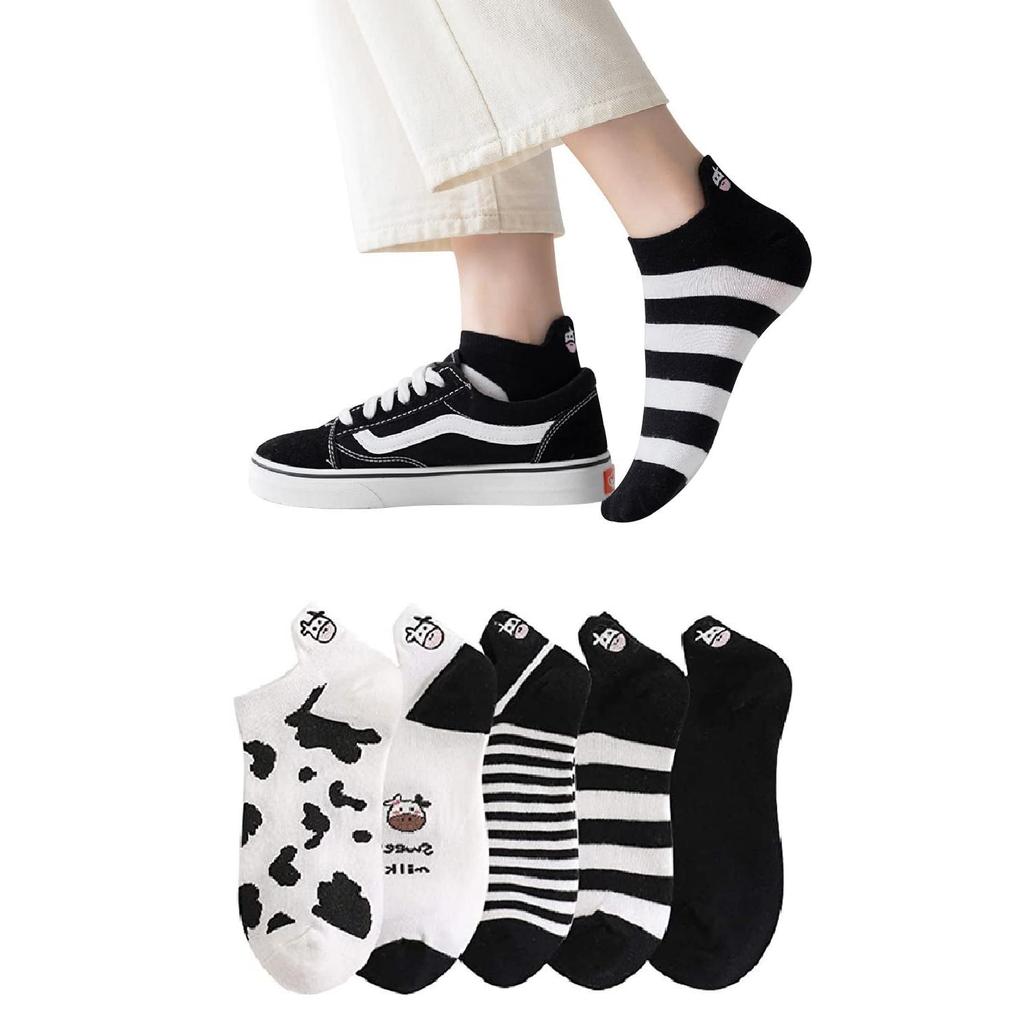 [Funny socks with unique black and white colors]: Those who like dairy cows will be interested in these funny socks for women. The milk cow is spotted with black and white, and these women's short socks have black and white colors, giving you a sense of cuteness and purity. Although the colors are not flashy, the unique coloring and striped patterns will never go out of style.