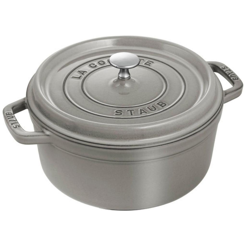 Staub Cocotte Round Gray Large Hand Cast Enamel Pot IH Compatible Japanese Product with Serial La Cocotte Round "Pico 24cm" [Authorized Number]