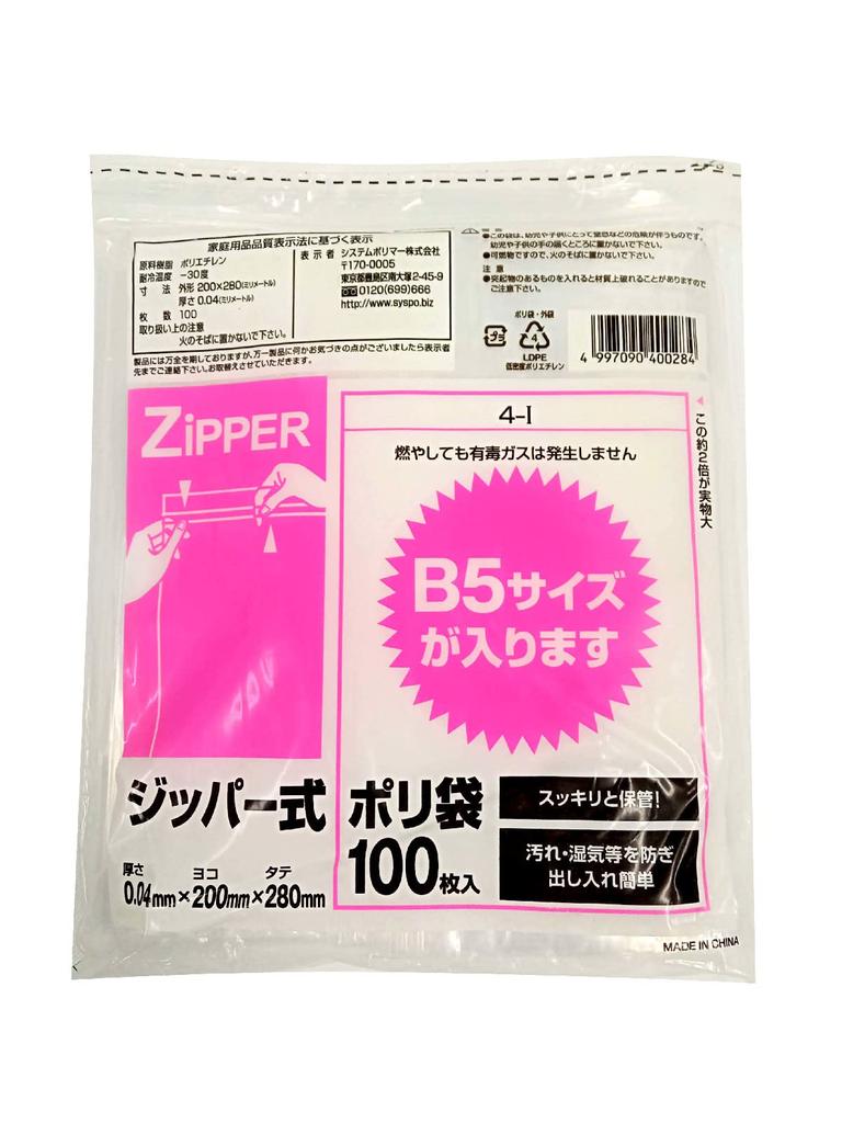 System Polymer Storage Bag Zippered Plastic Bag I 20 X 28cm Transparent 100 Pieces 4-I