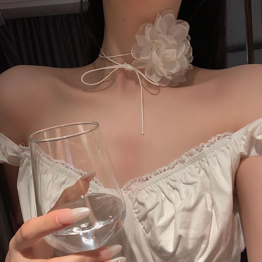 Xiaoxiangfeng Flower Necklace French Retro Chocker Collar Niche Collarbone Chain Neck Strap Neck Chain Accessories
