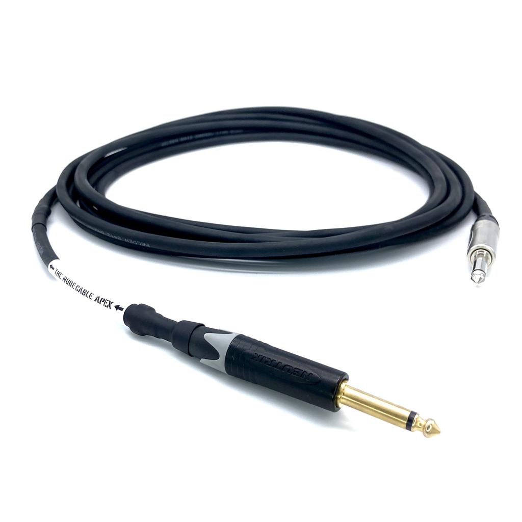 [Response and density that does not deteriorate even at 10m] Tuned specifically for APEX, the amount of solder used is reduced by approximately 10% compared to the standard model. By controlling the frequencies below 300Hz, which often occur in band ensembles, we transmit the optimal low range for guitar sounds to the amplifier. Equipped with a "stabilizer", an original technology of NUDE CABLE, near the exit side jack to control ultra-low frequencies below 50Hz. By suppressing the generation of unnecessary overtones, the fullness of the midrange typical of guitar sounds is improved. It combines outstanding sound clarity and presence. Furthermore, the input jack is NEUTRIK gold plated. The characteristic of the gold-plated jack, which gently rolls off the ultra-high frequencies, was used for equalizing the cable. While maintaining the standard picking response, speed, and followability of the standard model, it also provides the lustrous and deep midrange required for guitar sounds, the thickness of the rear PU, and the crisp chord tone that guitarists seek. We reached even more.