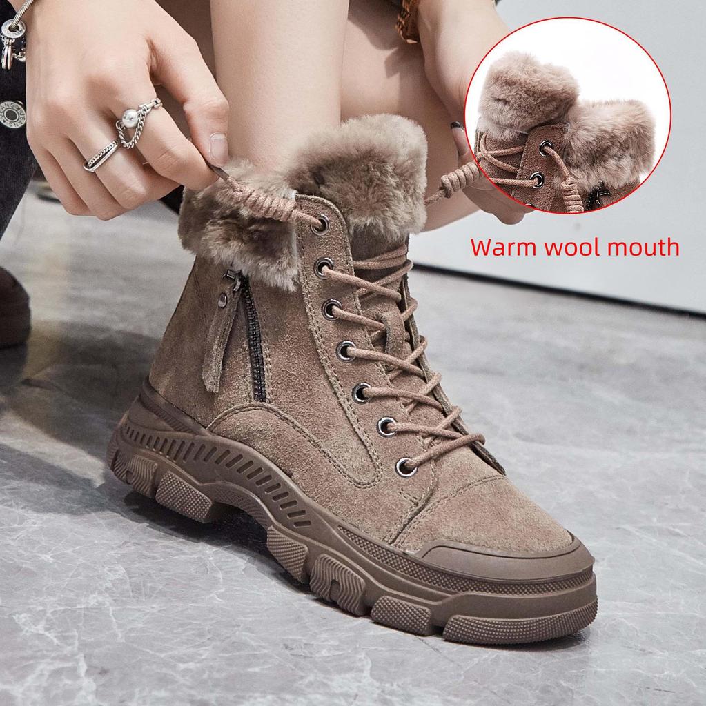 2024 Autumn/Winter Women's Velvet Martin Boots: British Style, Thick-Soled, Furry Casual Cotton Footwear