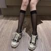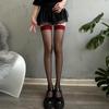 Black Lace Bow Garter Stockings - Over-the-Knee Fishnet for Women