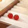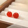 Banyan Tree Silver Red Agate Women's Earrings: Simple, Versatile, Round Beads, Retro High-End Design