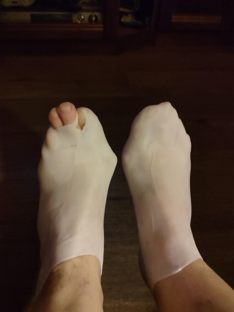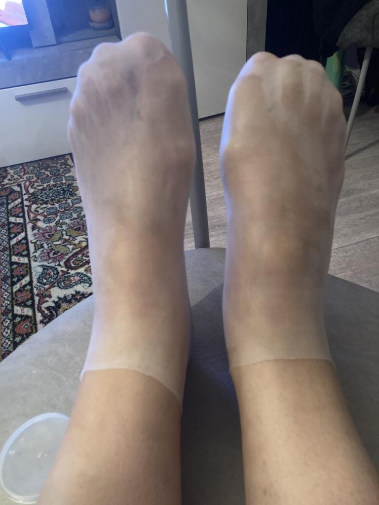 Wonderful socks. Heels and marks after them are simply velvety. But it's a bit heavy to wear them all night.