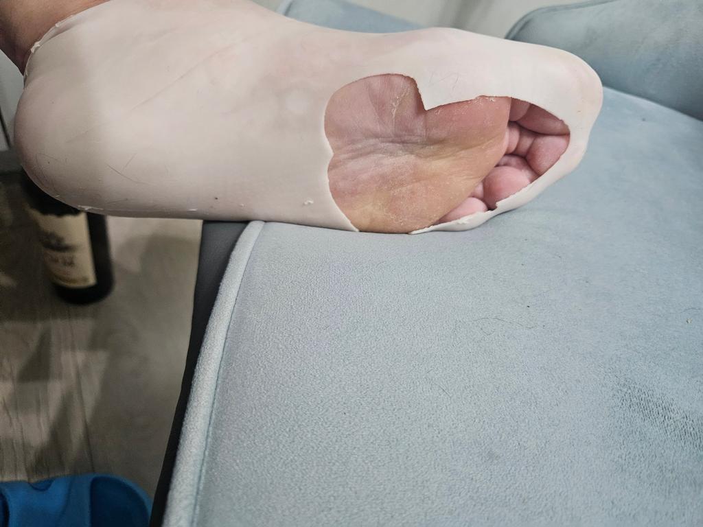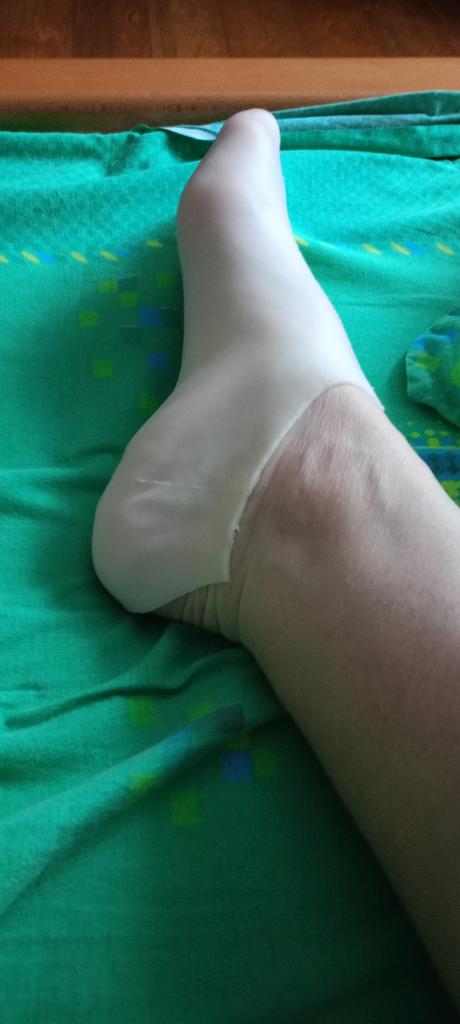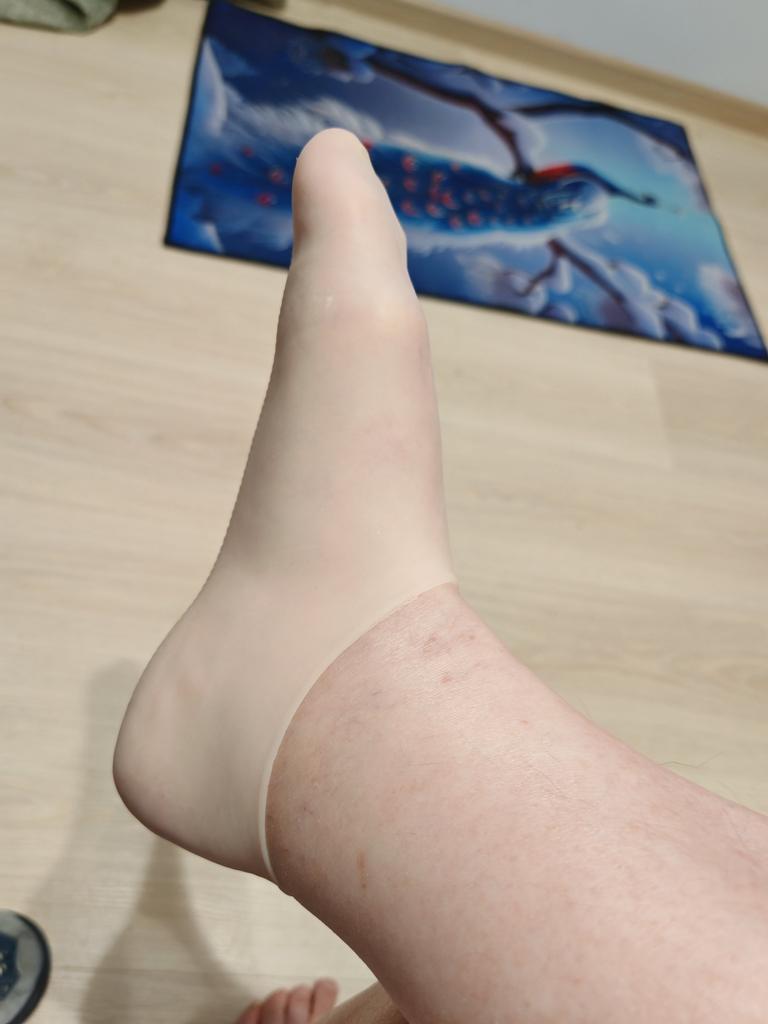 Such a cool effect after them, I applied cream to my legs, put them on, went to sleep, in the morning my heels are like silk, you can't walk in them, they are slippery.