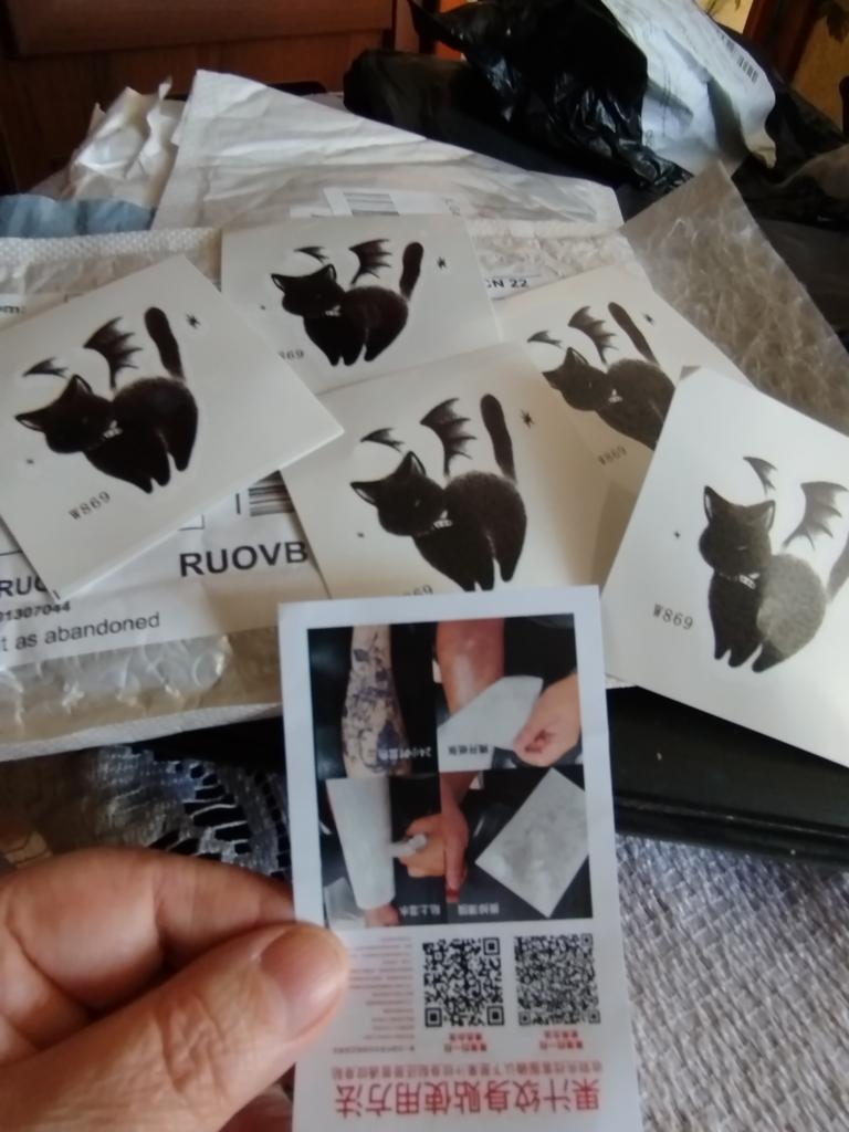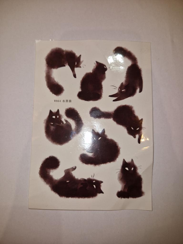 cat temporary tattoos. nothing to add, like those of others. the only thing, they arrived crumpled, it would be good to pack them better. the drawings themselves are nice