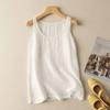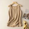 Stylish Women's Summer Casual O - Collar Sleeveless T - Shirt. Solid Color, Loose - Fitting Cotton Linen Vest for Effortless Comfort