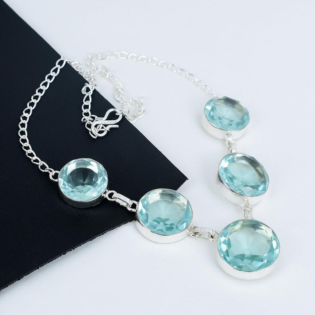 Beautiful Aquamarine Gemstone Handmade 925 Sterling Silver Necklace, Aquamarine Silver Necklace For Wife, Unisex Necklace Wadding Gift