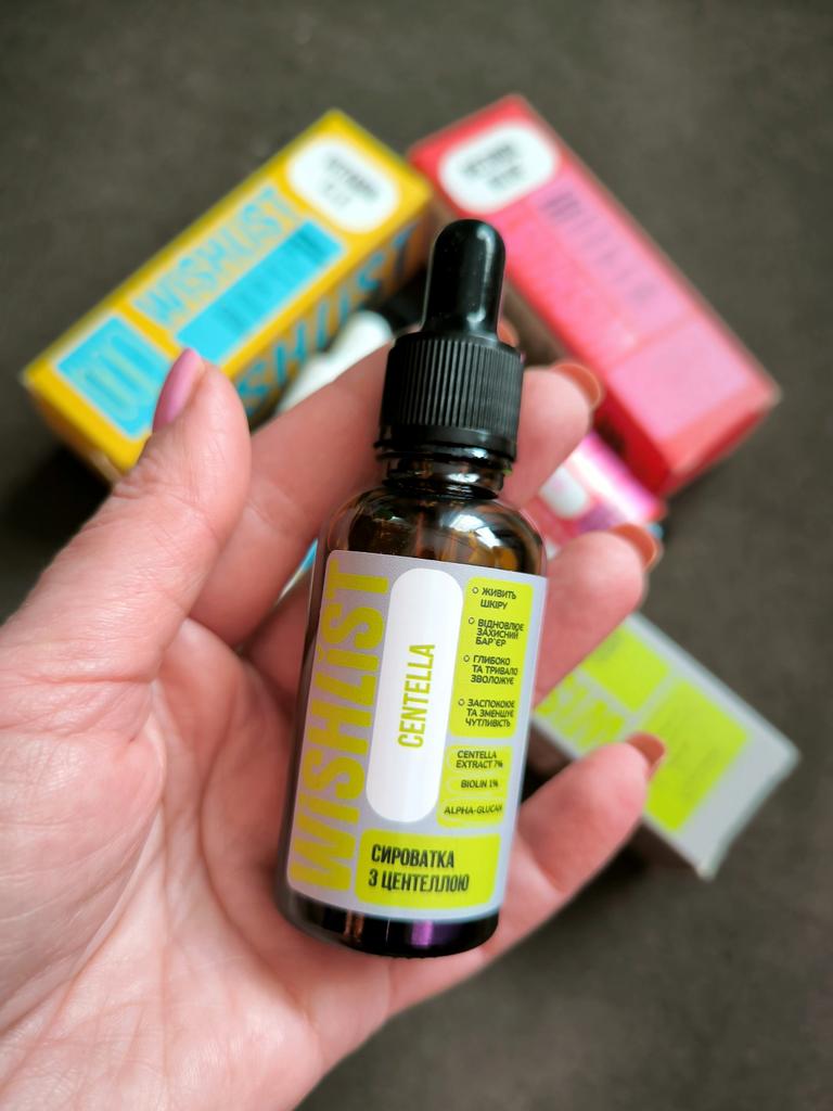 - WiSHLiST CENTELLA SERUM, 30 ML for soothing and restoration! Centella Asiatica has soothing and anti-inflammatory properties, helping to reduce irritation, redness and promote skin healing.. It strengthens the protective barrier, providing additional protection from external aggressors.