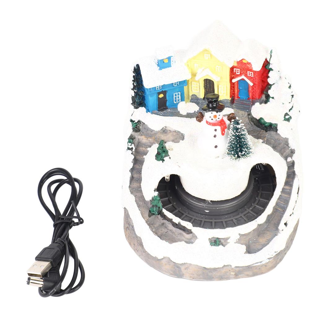 Xmas Music Box Resin Rotating Light Up Train Musical Box Tabletop Ornament for Holiday Home Decor