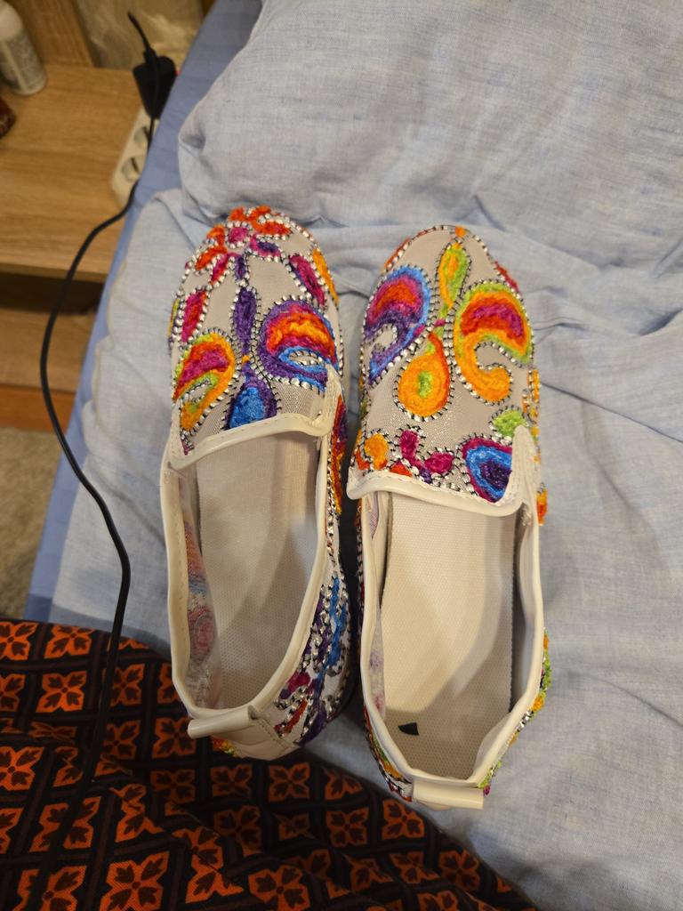 I'm buying these for the second time. They are a bit loose on my 38.5. But the different pattern on the slippers confused me. The embroidery is on thin mesh, very comfortable to walk in summer.
