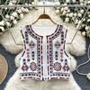 New National Style Floral Cardigan Vest Women Fashion Embroidery Cropped Waistcoat Vintage O Neck Sleeveless Female Outerwear Chic Vest Tops