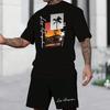 Hawaii European 3D Printed Men's Short Sleeved Fashionable T-shirt Dopamine Beach Casual Shorts Set Soft and Comfortable