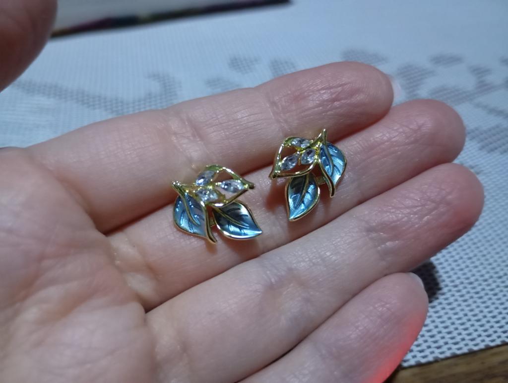 Blue Leaf Earring for Women Golden Metal Imitation Zircon Stud Earrings Jewelry Accessories