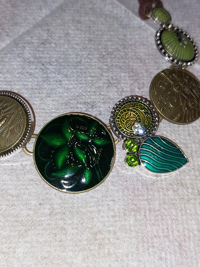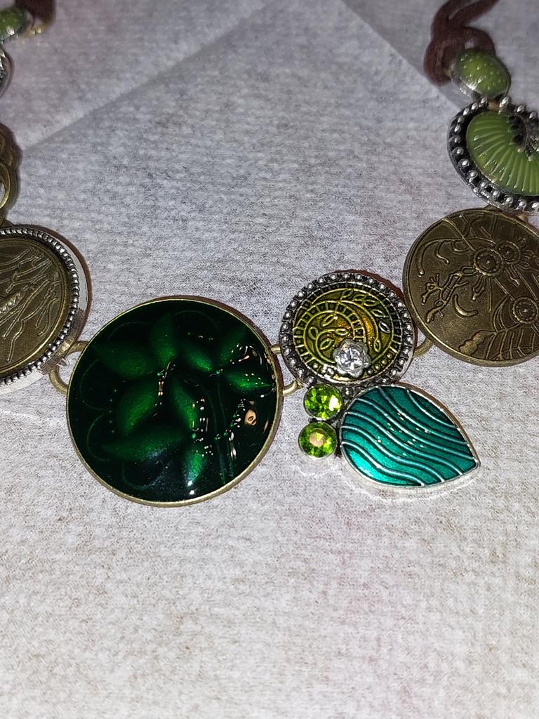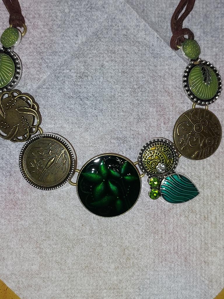 Ethnic style necklace, but very short. Removed the cords, made a bracelet! Looks great in the bracelet!