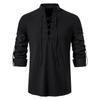 Shirts Lace Up Linen Tops Mens Casual Vintage Medieval Renaissance Solid Loose Soft Cloths