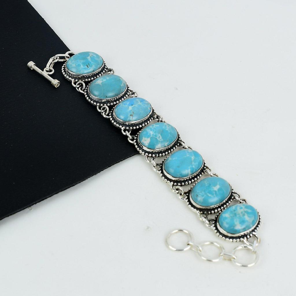 Amazing Larimar Gemstone Handmade Jewelry, 925 Sterling Silver Bracelet, Larimar Silver Bracelet For Wife , Unisex Bracelet, Wadding Gift For Love