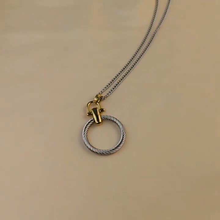 Creative Fashion Trend Round Cable Twisted Circle Pendant Stainless Steel Women's Versatile Clothing Necklace