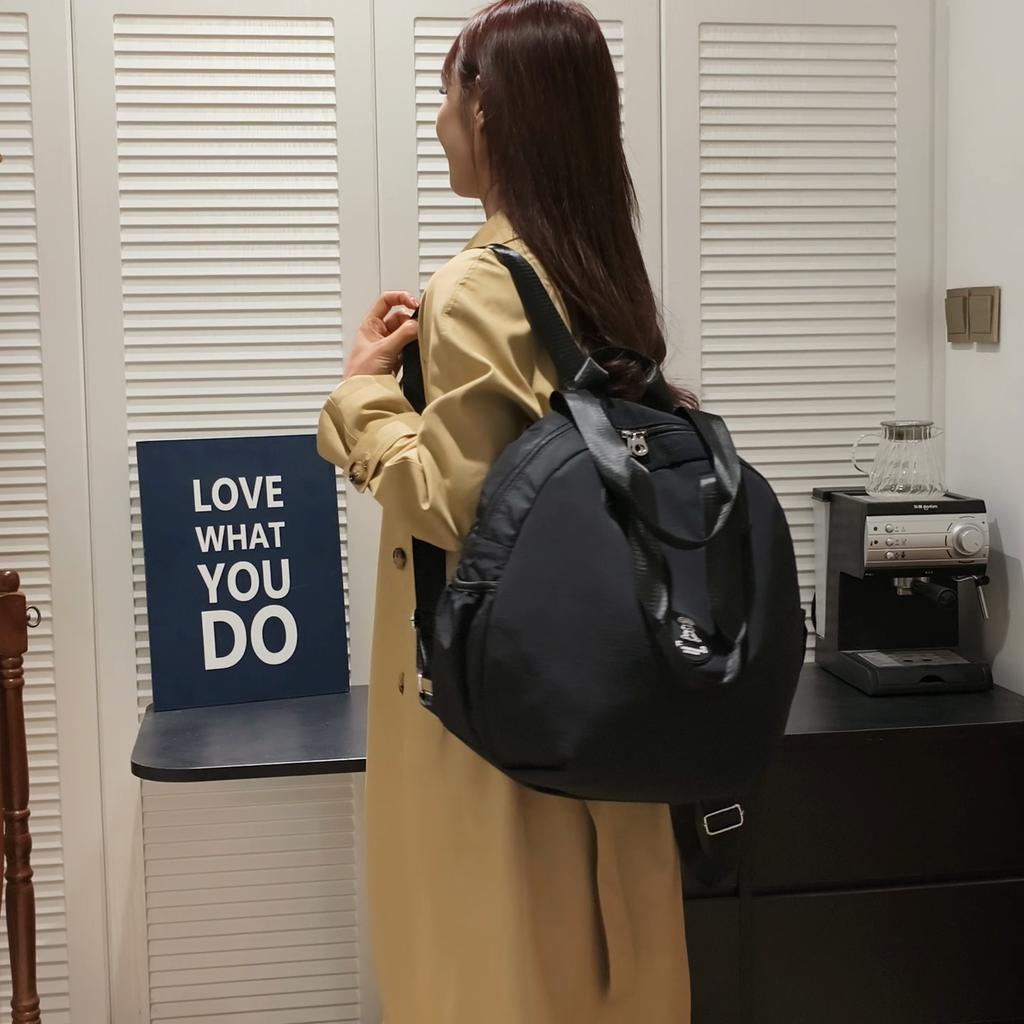 Women's Backpack Round Bag Large Capacity Travel Bag Solid Color Student Schoolbag