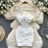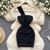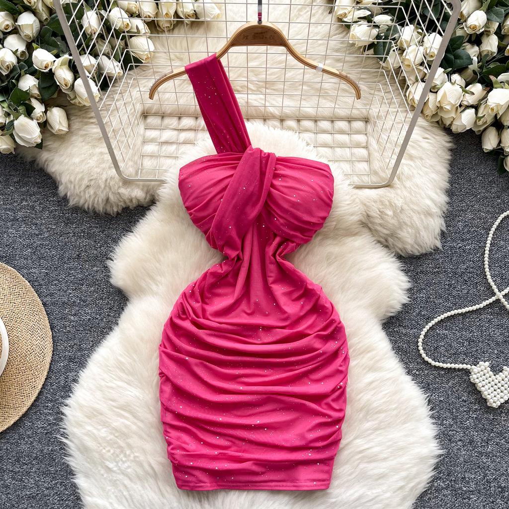 Summer Women One Shoulder Strapless Sexy Bling Bling Slim Sheath Bodycon Mini Short Club Party Dresses