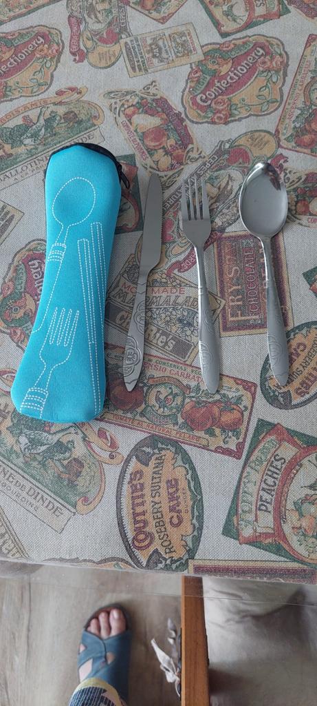 As a travel stainless steel cutlery set (Fork, spoon, steak knife) which is portable for travel, durable, lightweight and environmentally friendly. Lightweight, dessert size, will be useful, thank you 😉. Recommend!!! 🌷🤙🌷🤙🌷🤙
