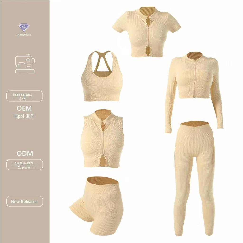 Seamless European and American Yoga Outfit: Sports Underwear, Long Sleeve Vest, and High Waist Pants for Women