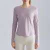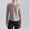 Chuandun Women's Slim Fit Quick-Dry Yoga Top - Long Sleeve, Breathable, Round Neck, Curved Hem
