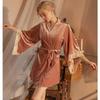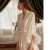 "Duman French Lace Sexy Velvet Lapel Nightdress & Robe Set"
